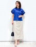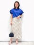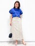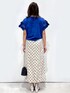 yuka.a 159cm 【サイズ感】 トップスMサイズ着用 ゆったりした身幅で体のラインを拾わず、肩周りも自然に落ちるフリルデザインなので、肩幅が張って見えることなく着られます^ ^! 丈はインでもアウトでもバランス◎な長さです。 スカート:Sサイズ着用でジャストサイズでした。 すっきりとしたシルエットで腰回りもコンパクトめなお作りでした。 丈は身長159cmで足首上の長さがありました。 【素材感・着心地】 トップス:ボディ部分は艶のあるコットンで肌あたり良く、伸縮性もあるので着心地も◎です。 お袖のフリルはシャツ素材でハリがあり、フリルが 立体的に表現されます。 スカート:麻混の夏らしい爽やかなお素材でありながら、ストレッチ性もあり穿き心地◎です! 後ろにしっかりとスリットが入っているので、足捌きも◎です^ ^ 【おすすめポイント】 トップス:フリルが華やかな大人可愛く着られるカットソーです^ ^! ボリューム感のある二段フリルで、上側はランダムなフリルになっている、こだわりのデザインでお作りしています! スカート:ナロースカートデザインで、ドット柄を大人らしく着こなすことができます^ ^ カジュアルにロゴTなどと合わせても、きれいめにブラウスとも◎で、着映えるスカートです! 【コーディネートのポイント】 ドット柄スカートを大人可愛くコーディネートしました。 ナローシルエットのスカートと、華やかカットソーはブルーを選び、可愛さの中にも大人らしさを出しました^ ^
