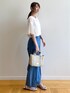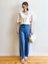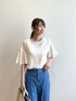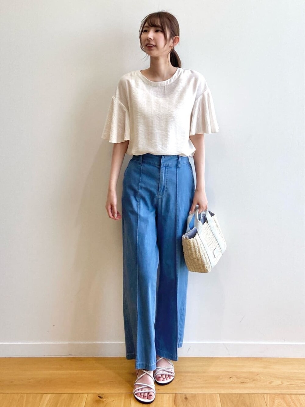 めぐ 166cm 【サイズ感】 Mサイズ着用。 トップスはややゆったりしてるデザインです! 白で少し透け感があるのでインナーの着用をオススメします! パンツはウエストが少し大きく感じました。 【着心地・素材感】 トップスはさらっとしているので、夏にぴったり パンツはデニムですが、夏用の薄いさらっとした素材なので涼しいです! 【オススメポイント】 トップスは、袖にデザインがあり二の腕カバーが叶います! 【スタイリングポイント】 綺麗めスタイルですが、デニムで楽ちんコーデです!
