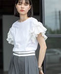 OPAQUE.CLIPスタッフ(OPAQUE.CLIP)のTシャツ/カットソー「◆《美人百花掲載》フリルドッキングスリーブカットソー【洗濯機洗い可】」を使ったコーディネート