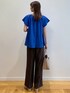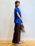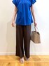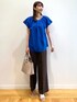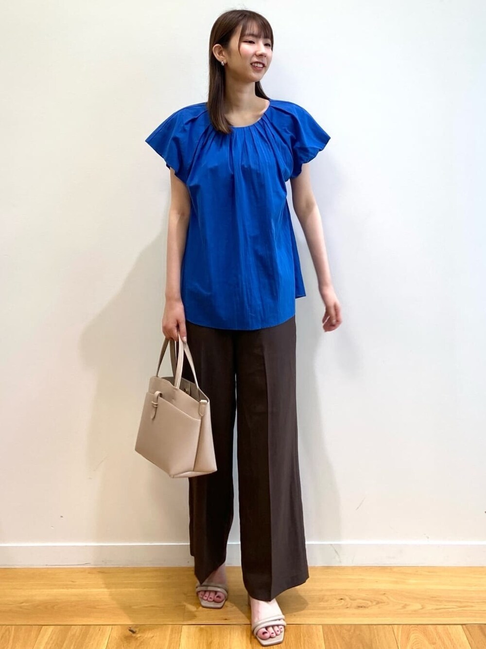 めぐ 166cm 【サイズ感】 Mサイズ着用。 トップスはややゆったりしていて、インもしやすかったです! パンツはウエストがゴムで楽ちん!着丈は166センチで着丈がちょうどよかったです! 【着心地・素材感】 トップスはさらっと落ち感があるので、夏でも着やすいです! パンツはオチ感があるワイドシルエットです! 【オススメポイント】 トップスは袖がふわりとしていて、タックが入っているので1枚で華やかに着用できます◎ 【スタイリングポイント】 お仕事や、学校行事にぴったりなスタイリング! カラーアイテムで華やかにしてます!