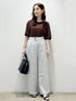 yuicci 156cm 【サイズ感】 ニットMサイズ着用。ほどよいシルエットで着ていただけるサイズ感です(^^)二の腕カバーできます♪ ほどよい丈感なので、イン・アウトどちらもしやすいです(^^) パンツMサイズ着用。156CM。かかと上ぐらいの着丈です♪少しウエスト余裕がありますが腰でとまりました◎ インしやすいサイズ感です(^^) 【素材感・着心地】 接触冷感機能がついたサラッとした素材なので、着心地抜群なニットです(^^) メランジ見えの表面感が特徴のワイドストレートパンツです♪ 【おすすめポイント】 広がりすぎず、キレイなシルエットで履いていただけるワイドストレートパンツです♪ ご家庭の洗濯機でお取り扱いしていただけるマシンウォッシャブルアイテムです(^^) 【スタイリングポイント】 ニット×ワイドストレートパンツを合わせた、デイリーシーンにもオフィスカジュアルにも着ていただけるスタイリングにしました♪