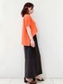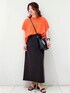 mame 154cm 【サイズ感・着心地】 ・tops Mサイズ着用。 ゆったりしていて、しっかり腕をカバーしてくれるだけ落ち感もあります◎ ・bottoms Mサイズ着用。 麻っぽい見た目の素材感に変わっています。 穿き心地も少し軽くなった気がします。 【おすすめポイント】 ニットは、メッシュ編みが透けすぎない感じで大人のゆとりあるニットという雰囲気です。 【スタイリングポイント】 オレンジ×ブラックの組み合わせ、大好きです◎