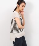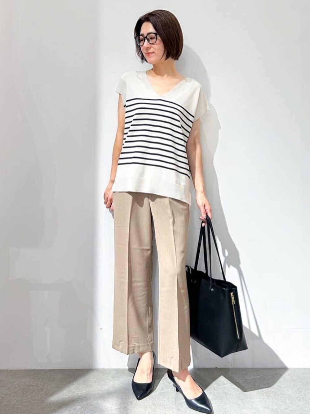 OPAQUE.CLIPスタッフ(OPAQUE.CLIP)のニット/セーター「◆クールタッチVネックフレンチスリーブニット【UVケア/接触冷感/洗濯機洗い可】」を使ったコーディネート