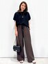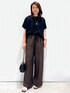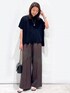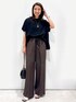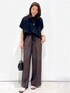 yuka.a 159cm 【サイズ感】 トップス:Mサイズ着用 ワイドなお作りでゆったりと着られる、リラクシーなシルエットです。 前後差のある丈でサイドスリット入りなので、アウトで着た際もバランス良く着こなせます^ ^ パンツ:Mサイズ着用 普段はSサイズを選ぶことが多いですが、こちらのパンツはウエストがゴム仕様で、紐で調整も可能なため問題なく着用できました。 【素材感・着心地】 トップス:メッシュ編みでトレンド感のあるサマーニットです。 レーヨン混のお素材なので落ち感があり、ドライな質感も◎! 抗ピリング・マシンウォッシャブル対応と、ニットのお悩みも安心です^ ^ パンツ:麻のように見えるドライな質感です。 それでいてポリエステル素材なので、お手入れ簡単なのも嬉しいポイントです! さらっと穿けるので、涼しく◎です^ ^ 【おすすめポイント】 トップス:メッシュが涼しげで、夏にぴったりなニットです^ ^! ゆるっとしたシルエットが、大人の余裕を出してくれる、こなれアイテム! パンツ:ウエスト部分がサテン生地でポイントになったデザインです。 トップスをインした際にウエストマークされるので、長足効果も◎! センタープレスが入っているので、リラクシーなシルエットですがキレイ見えします^ ^ 【コーディネートのポイント】 ブラウン×ブラックのカラーコーディネートで大人っぽく! メッシュや軽やかなお素材でダークトーンも重たくならず◎! 小物はスタイリッシュなアイテムをプラスしました。
