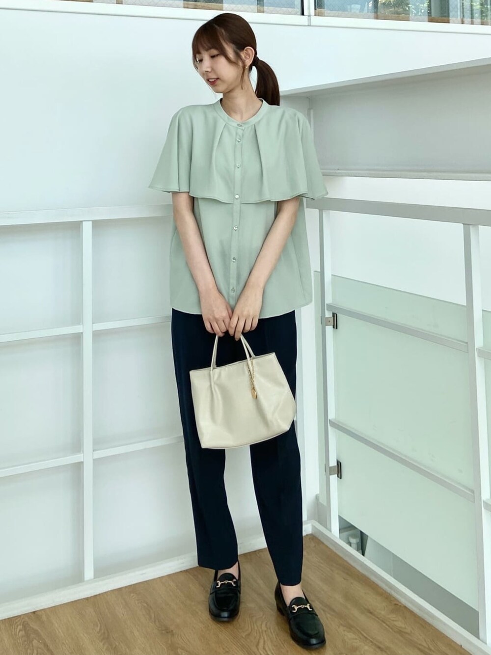 OPAQUE.CLIPスタッフ(OPAQUE.CLIP)のシャツ/ブラウス「ケープ風ブラウス【洗濯機洗い可】」を使ったコーディネート
