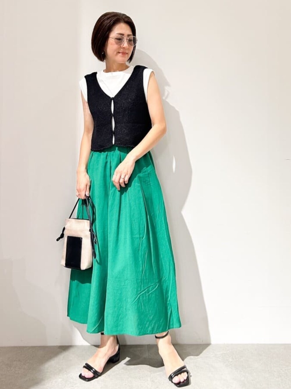 OPAQUE.CLIPスタッフ(OPAQUE.CLIP)のTシャツ/カットソー「◆【前後2WAY/ツインセット】ニットビスチェ×ノースリーブ【洗濯機洗い可】」を使ったコーディネート