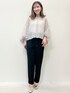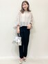 akky 157cm 【サイズ感】 トップス...フリーサイズ着用. バルーンスリーブになっており、着丈はやや短めです^^ パンツ...Sサイズ着用. 裾にかけてすっきりとするテーパードシルエットです^^ 【素材感・着心地】 トップス...少し凸凹感のあるシアー感が特徴のポリエステル素材です^^ パンツ...マットな質感とドライなタッチがポイントです♪ クリーンできちんと感ありながらもお手入れのしやすい防シワ機能付きです! 【オススメポイント】 トップス...袖は内側にチュールを重ねたボリューム袖になっております♪ パンツ...キレイみえもし、お仕事でもお使いいただけます! 【スタイリングポイント】 大人かわいいお出かけスタイル^^!