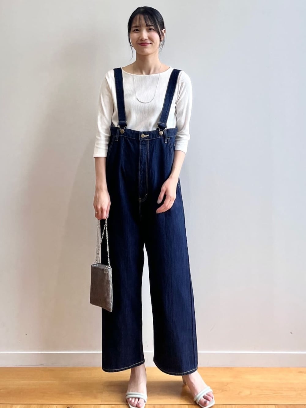 sachiko 174cm 【スタイリングポイント】 トレンド感のある、 ワイドシルエットのサロペットを主役に! 子供っぽくならないように、足元やバッグはきれいめなアイテムをチョイスしました。 【おすすめポイント】 *カットソー 7分袖で着回し力抜群! シンプルなデザインで1枚ではもちろんジャケットやアウターのインナーとしても着られます。 ボートネックで首周りをきれいに見せてくれるデザインです。 *サロペット 合わせるインナー次第でシーズン問わず着られるサロペット。 ハイウエストデザインでゆったりながら脚長効果もgood◎ ウエストがゆったりとしたオーバーなサイズ感がおしゃれ! 長めの丈感で高身長さんにもおすすめですよ◎ 【着心地】 *カットソー コットンを使用したリブ素材で肌に馴染みます。フィット感が安心感のある1枚です。 *サロペット ゆったりシルエットなので締め付け感なく着用できました! 【サイズ感】 *カットソー Mサイズでフィット感のあるサイズ感。 Lサイズで少し余裕を持って着用するのもいいと思います。 *サロペット ワンサイズでゆったりシルエット。 ショルダーベルトで丈を長めに調整して くるぶしにかかる長さでした。