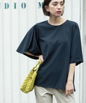 yuka.a 159cm 【サイズ感】 トップス:Mサイズ着用 ゆったりと着れるサイズ感で、丈もヒップの隠れる長めのAラインのシルエットです。 フレアデザインの5分袖が二の腕をカバーしてくれます^ ^ パンツ:Mサイズ着用 通常はSサイズを着用しているので、ウエストにややゆとりがありましたが、少し落として穿くとマニッシュ感が出て◎でした。 ワイドストレートのパンツはセンタープレスが入った広すぎないシルエットがキレイ見えします。 【素材感・着心地】 トップス:ブラウス見えするお素材ですが、ジャージ素材でのお作りのため着心地◎です! お手入れも簡単でお取り扱いもしやすく、UVケアと吸水速乾機能付きも嬉しいポイントです^ ^ パンツ:メランジ感のある質感がコーディネートにメリハリをつけてくれます。 柔らかく穿き心地も◎で、マシンウォッシャブル対応で、気軽にお洗濯して頂けます^ ^ 【おすすめポイント】 トップス:トップスはチューリップスリーブで、しっかりスリットが入り重なったデザインです。 ヒラリとした動きが素敵で、甘くなりすぎないのも◎! パンツ:腰回りはワンタックデザインでスッキリと、脚長効果も◎なパンツです。 お仕事にもオススメなキレイめに着こなせるアイテムです^ ^ 【コーディネートのポイント】 着心地抜群のキレイ見えカットソーでお仕事コーディネート! ネイビーカラーは知的な印象にしてくれます^ ^