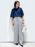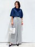 yuka.a 159cm 【サイズ感】 トップス:Mサイズ着用 ゆったりと着れるサイズ感で、丈もヒップの隠れる長めのAラインのシルエットです。 フレアデザインの5分袖が二の腕をカバーしてくれます^ ^ パンツ:Mサイズ着用 通常はSサイズを着用しているので、ウエストにややゆとりがありましたが、少し落として穿くとマニッシュ感が出て◎でした。 ワイドストレートのパンツはセンタープレスが入った広すぎないシルエットがキレイ見えします。 【素材感・着心地】 トップス:ブラウス見えするお素材ですが、ジャージ素材でのお作りのため着心地◎です! お手入れも簡単でお取り扱いもしやすく、UVケアと吸水速乾機能付きも嬉しいポイントです^ ^ パンツ:メランジ感のある質感がコーディネートにメリハリをつけてくれます。 柔らかく穿き心地も◎で、マシンウォッシャブル対応で、気軽にお洗濯して頂けます^ ^ 【おすすめポイント】 トップス:トップスはチューリップスリーブで、しっかりスリットが入り重なったデザインです。 ヒラリとした動きが素敵で、甘くなりすぎないのも◎! パンツ:腰回りはワンタックデザインでスッキリと、脚長効果も◎なパンツです。 お仕事にもオススメなキレイめに着こなせるアイテムです^ ^ 【コーディネートのポイント】 着心地抜群のキレイ見えカットソーでお仕事コーディネート! ネイビーカラーは知的な印象にしてくれます^ ^