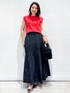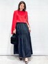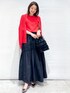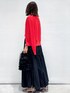 yuka.a 159cm 【サイズ感】 カーディガン:Mサイズで程よくゆとりのあるジャストサイズでした。 秋になりインナーにカットソーやブラウスを着ても、問題のないサイズ感です。 ニット:Mサイズ着用 身体にフィットしすぎず、キレイなシルエットで着られるサイズ感でした。 丈はインでもアウトでもバランスの良い長さです。 スカート:Mサイズ着用 ウエスト周りにゆとりがありました。 今回のコーディネートでは、長さが欲しかった為Mサイズを着用しましたが、私のジャストサイズはSサイズでした。 丈はウエスト位置少し落として着用した場合、身長159cmで足首が隠れる長さでした。 【素材感・着心地】 カーディガン:楊柳風の編み柄で表面感があるニット生地です。 ほどよくシアー感があり、さらりとした着心地です。 ニット:レーヨン・ナイロン混のキレイな質感のニット素材です。 ツヤ感と軽やかさがあり、キレイめな印象です^ ^ スカート:ハリと程よくツヤ感のあるお素材です。 スカートの立体感が美しく表現され、高見えする生地でお作りしています。 【おすすめポイント】 カーディガン:ベーシックなシルエットですが、編み柄がオシャレ見えするカーディガンです。 アンサンブルのニットと一緒にコーディネートするのもオススメです^ ^ ニット:すっきりとしたシルエットで、ラインがキレイなニットトップスです。 ボトムを選ばず、ON/OFFどちらにもお使い頂ける万能アイテムです^ ^ スカート:シャーリングとギャザー、切り替えデザインがおしゃれ見え!なスカートです^ ^ ボリュームがあり華やかですが、質感やカラーでモードな印象もあり、大人の遊び心のあるコーディネートにしてくれます。 【コーディネートのポイント】 レッド×ブラックのコントラストの強いカラー合わせで、オシャレ見えコーディネート! キレイめな質感のアイテムで、女性らしい印象に^ ^