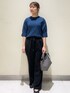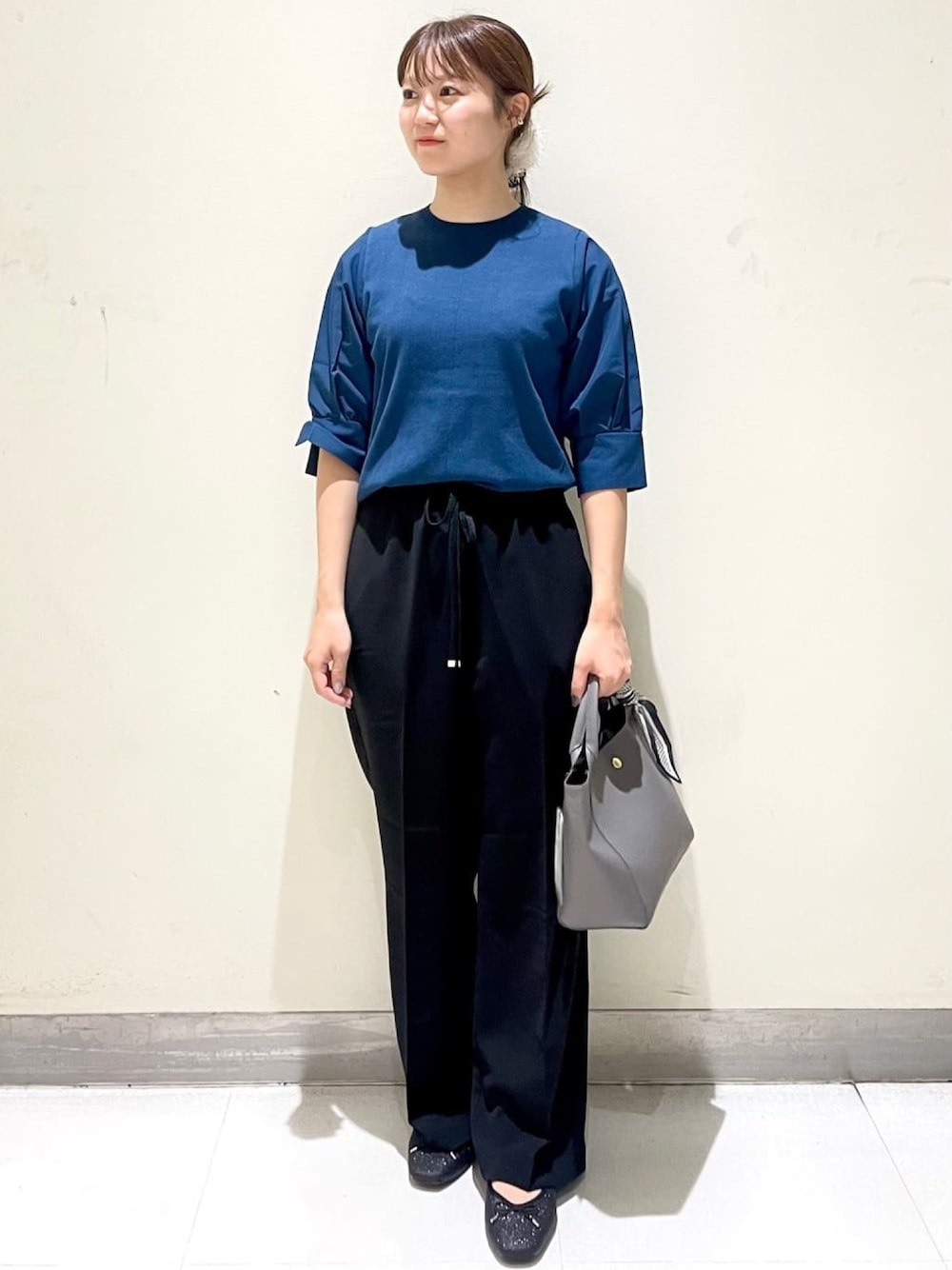 ユキ 152cm 〜トップス〜 [サイズ感] ピッタリしており綺麗なサイズ感です。 ニットの部分はラインを程よく拾います。 [素材・着心地] 首元はピッタリしています。胸元も開かず、きっちり見えます。オフィス使いでも◎ 袖の部分は引っ付かず身離れしているので、 腕周り楽です。 [おすすめポイント] コンパクトなデザインなのでスカートスタイリングでも◎ 〜パンツ〜 [サイズ感] ウエストの紐で調節可能なのでサイズ感◎ [素材・着心地] 締め付け感なく身離れもしている為着心地抜群に良いです。 [おすすめポイント] 張り感があるので程よくきっちり感もでて オフィスカジュアルでも使えます◎ [スタイリングポイント] 落ち着いた色味使いできっちりした場面でも 使えるスタイリングになってます。