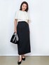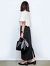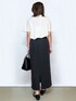 yuka.a 159cm 【サイズ感】 トップス:Mサイズ着用 程よくゆとりをもって着られるジャストサイズでした。 やや長めの半袖丈で、背中のタックでシルエットもキレイです。 スカート:Mサイズ着用 普段はSサイズ着用することが多いため、ややウエストにゆとりがありましたが、トップスをインした場合も響かず、身体のラインも出ず◎でした。 丈は身長159cmで足首上ほどの長さがありました。 華奢な方や小柄な方はSサイズがオススメです。 【素材感・着心地】 トップス:キレイ見えするポリエステルジョーゼット素材でお作りしています。 お手入れのしやすさも魅力です^ ^! スカート:麻混のナチュラルで清涼感がありながらもキレイ見えするお素材です。 それでいてマシンウォッシャブル対応、程よいストレッチなど機能性も◎です^ ^ 【おすすめポイント】 トップス:ケープ風デザインが上品でキレイ見えするブラウスです。 デザイン性はありますが、コーディネートしやすく 着回し力も◎です。 ちよっと特別な日のお出かけやお仕事にもオススメです^ ^ スカート:大人シリーズの美シルエットスカートです。 着回し力の高さは実証済み^ ^! カジュアルからお仕事にまで、シーンを選ばずお召し頂けます! 【コーディネートのポイント】 モノトーンできちんと感がありながらも、さりげないケープデザインで上品な華やかさもプラスしました^ ^