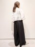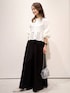 machi 157cm 短丈ブラウスとフレアーパンツでつくる シンプルモノトーンコーデのご紹介です。 【サイズ感】 ・ブラウス Мサイズ着用 身頃は程よくゆとりがあります ・パンツ Мサイズ着用 身長157cmで かかとギリギリの丈です。 【素材感・着心地】 ・ブラウス 少し透け感があります。 軽い着心地で、柔らかいポリエステル素材です。 ・パンツ ウエストの後部分がゴムで、楽に着られました。 通年通してご使用いただける、ポリエステル素材です。サラサラしています。 【オススメポイント】 洗濯機でのお手入れが可能です。 ・ブラウス ボクシーシルエットです。 短丈で、トレンド感のあるブラウスです。 切替とタック使いで、スタイルアップ効果が◎ ボタンを開けて、羽織としてもおすすめです。 ・パンツ サイドにスリットが入っているフレアーパンツで、動きが出てエレガントな雰囲気です。 落ち感があるので、脚長効果もあると思います◎ 【スタイリングポイント】 短丈のブラウスを活かして、トレンド感のあるモノトーンコーデにしました。小物はシルバーを合わせてスッキリとさせました。