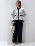 えり 156cm 【サイズ感】 カーディガン:Mサイズ着用身頃ジャスト、袖丈少し長め。 ワイドパンツ:Sサイド着用、ウエストゆったりめ。ゴム仕様で楽に穿いて頂けます。ドローコードでサイズ調整も○ 【着心地.素材感】 カーディガン:身頃はアクリル、コットン混の2色の糸を編み立てたにプレーティング仕様です。マシンウォッシャブル対応。 ワイドパンツ:メランジ見えのポリエステル、ツイル素材でこれからの季節にはぴったりです。程よく厚みもありシルエットが綺麗に見せていただけるセンタープレス仕様です。 【おすすめポイント】 カーディガン:色違いでネイビーのご用意がございます。うっすらとピンク地が見えるのが素敵な一枚です。 ワイドパンツ:同素材でテーパードパンツのご用意がございます。是非ご覧下さい。 【スタイリングポイント】 シンプルスタイリング。