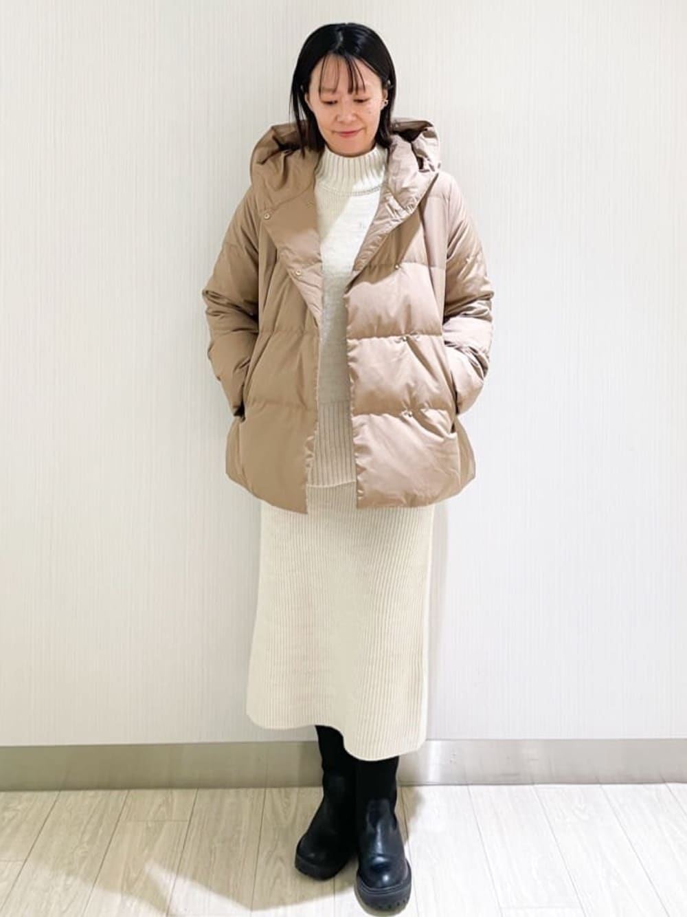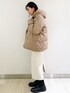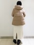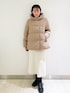 akari 164cm フードミドル丈ダウンコートのご紹介です 【サイズ感】 164㎝ 骨格ストレートでLサイズを着用してみました。やや厚手のニットを着用しても少しゆとりがあります。前を閉めて着ても楽に着ていただけます。丈はお尻くらいまでの長さです。 【着心地】 とても軽くて暖かいです。ミドル丈なので真冬も安心して着れそうです。 【おすすめポイント】 上品に見えるダウンはアウトドアウェアにも使用されるレベル800フィルパワー。 撥水性や抗菌加工など機能性も◎ 【スタイリングポイント】 カジュアルに見えがちですが柔らかな色味で女性らしいスタイリングにしてみました(^^)