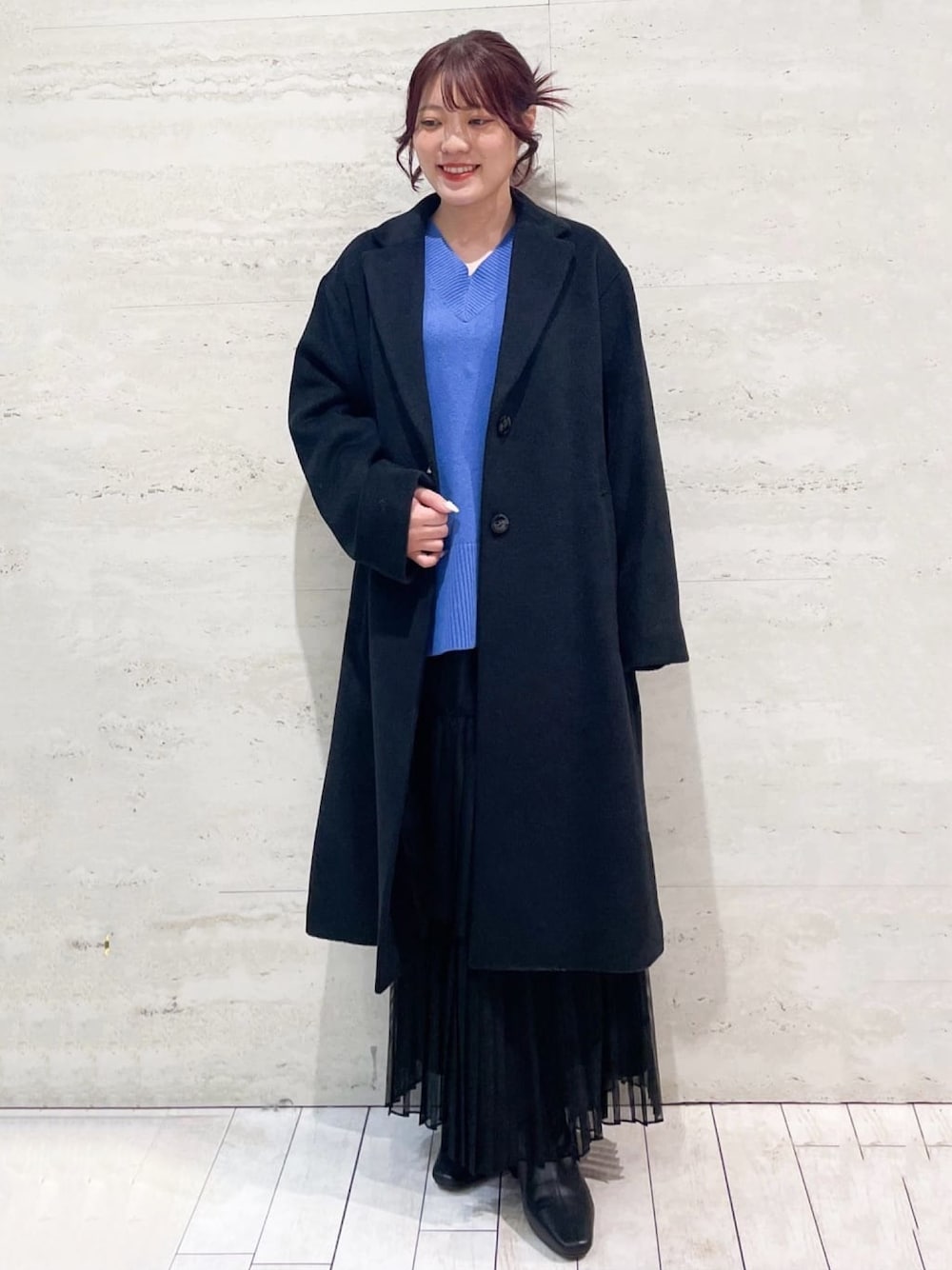 かほ 153cm 【サイズ感】 153センチの私が着ると、とてもゆったりサイズとなります。 丈はちょうど良く、かっこよく着ていただけます! 【着心地・素材感】 とても軽いです! ウールとカシミヤが入っているので柔らかく、あたたかいです。 【オススメポイント】 とても軽いので、サラッと羽織れます! 【スタイリングポイント】 黒でかっこよくスタイリングしてみました♪