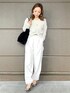 yurika 162cm ◆ サイズ感 ◆ ニット ▷体型カバー効果も期待できるゆるシルエットが魅力です。 パンツ ▷ 程よいワイドシルエットで大人っぽい印象を与えつつ、日常使いにもぴったりです。 ◆ 着心地 素材感 ◆ ニット ▷ ふわふわの質感が華やかさを演出し、カジュアルにもきれいめにも◎洗濯機で洗えるマシンウォッシャブルでお手入れも簡単。 パンツ ▷トレンドのウールライクカーゴパンツ♪すっきりとしたタックデザインが特長です。 裾は絞らずシルエットを変えて穿く事も出来ます◎ ◆ おすすめポイント ◆ パンプス ▷華やかなビジューパール調パンプスは、オケージョンにも最適。抗菌防臭素材で快適さも兼ね備えています。 ◆ スタイリングポイント◆ ▷ホワイトのワントーンコーデ♪女性らしいふわふわニットにカーゴパンツの甘辛MIXにパンプスを合わせた大人カジュアルです♪