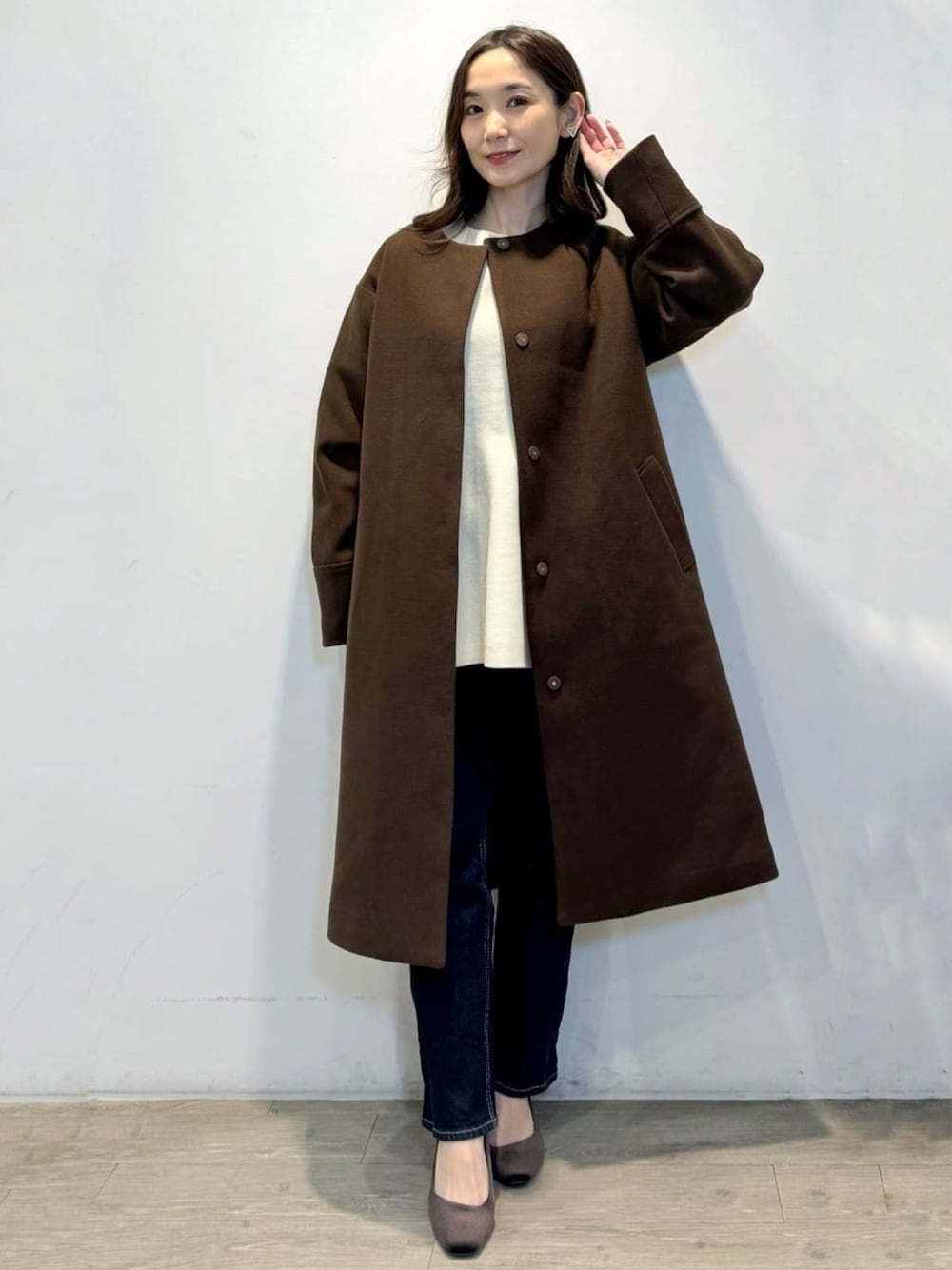 OPAQUE.CLIPスタッフ(OPAQUE.CLIP)のノーカラーコート「◆《S-LLsize》ウールライク メルトンノーカラーロングコート」を使ったコーディネート