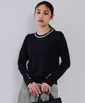 OPAQUE.CLIPスタッフ(OPAQUE.CLIP)のカーディガン/ボレロ「《美人百花掲載》配色ラインカーディガン/アンサンブル対応【洗濯機洗い可】」を使ったコーディネート