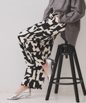 えり 162cm 印象的な柄のパンツを主役にした、大人のカジュアルスタイル 【おすすめポイント】 幾何学柄のパンツは、程よい厚みのある合繊素材で安心感のある履き心地。 カジュアルスタイルにおすすめです! 【スタイリングポイント】 白黒柄のパンツに合わせて、ブラックトーンでまとめて大人っぽく着こなしました。 【サイズ感】 ・Tシャツ 程よいフィット感で身体に張り付かないくらいのサイズ感 ・カーディガン ボクシーなシルエットでインナーにブラウスなどを着ても羽織れそうです ・パンツ ウエストゴムでやや余裕がありますが、紐が通っているので少し調整可能です 【素材感、着心地】 ・Tシャツ コットン100%ですがシルケット加工された生地を使用しているのでハリがあり滑らか。 程よく厚みがあり、ジャケットなどのインナーにもおすすめです。 ・カーディガン 程よい厚みがあり、春の羽織として重宝しそう。 ・パンツ 落ち感のある合繊素材です。