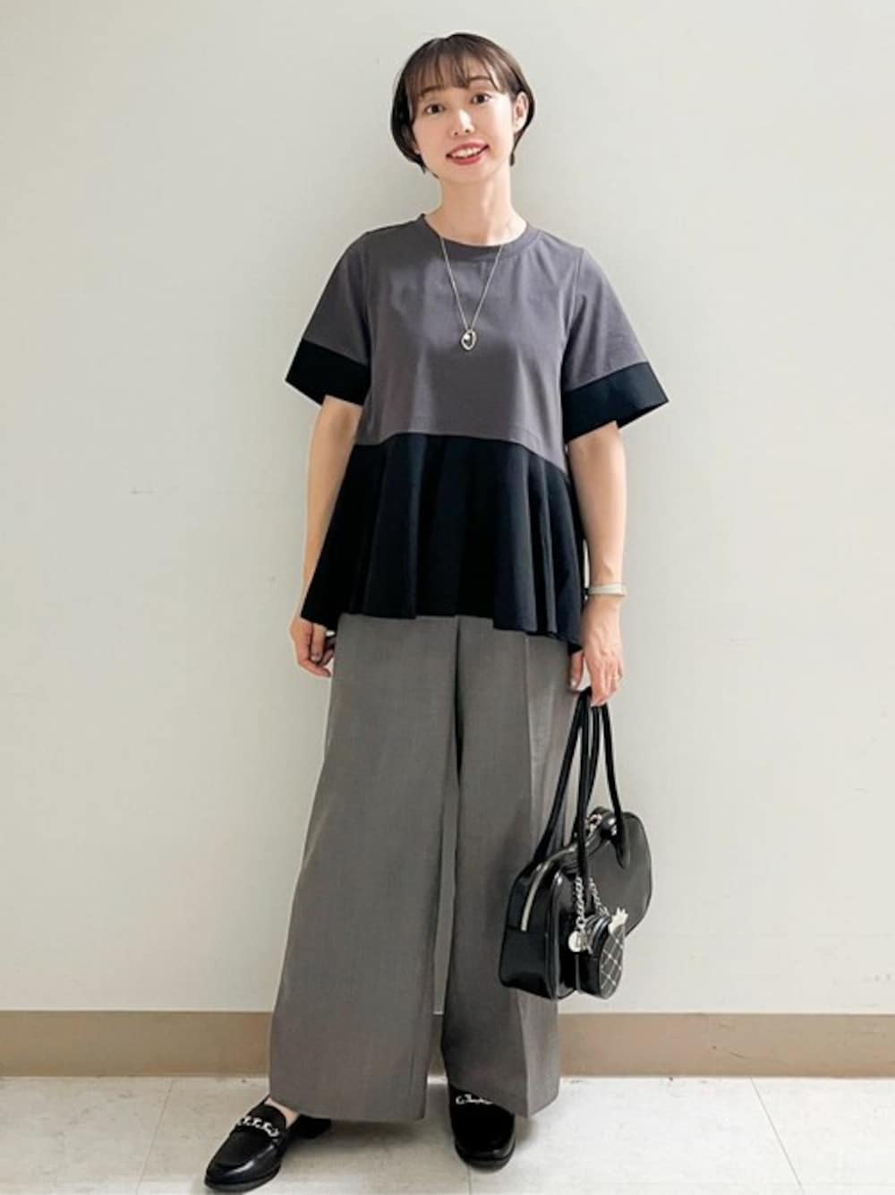OPAQUE.CLIPスタッフ(OPAQUE.CLIP)のTシャツ/カットソー「配色フハクドッキングペプラムトップス【洗濯機洗い可/抗ピル】」を使ったコーディネート