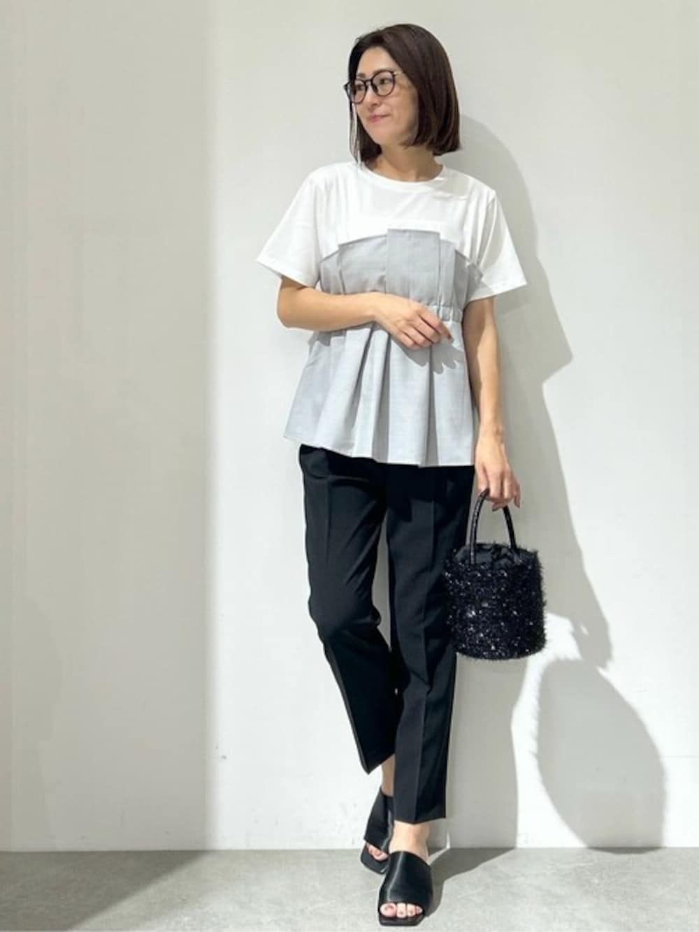 OPAQUE.CLIPスタッフ(OPAQUE.CLIP)のTシャツ/カットソー「タックビスチェドッキングカットソー【洗濯機洗い可】」を使ったコーディネート