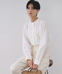 NAKA 161cm 【シルエット】 Iラインのスカートにフリルブラウスを合わせた、縦長で大人っぽいシルエット。赤のカーディガンを肩掛けして、上半身に程よい華やかさをプラス。 【素材・着心地】 スカートは柔らかいスエード調素材で、見た目以上に動きやすい。ブラウスはさらりとした肌触りで、1日着てもストレスを感じにくい快適さ。 【おすすめポイント】 ※上下共にマシンウォッシャブル可能 ① 裏返して、洗濯ネットに入れてお洗濯 ② 中性洗剤使用で風合いキープ ③ 平干しで型崩れ防止 ④ 頻繁に洗いすぎないことで風合いが保たれることもあります ⑤ マシンウォッシャブルが不安な方は、クリーニングもおすすめ 【スタイリングポイント】 落ち着いたグレーとホワイトのコーデに、赤を差し色として効かせることで、顔まわりが一気に華やぎます。小ぶりのバッグやブーツでバランスを取り、40代ママ世代にぴったりの上品コーデに仕上がります。