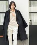 RINA 158cm 【サイズ感】 アウター: ストンとしたシルエットに見えて、意外とゆとりあるサイズ感です。 シャツ: ゆったりとしたサイズ感です。 着丈はヒップにかかるくらいです。 パンツ: 脚幅のあるワイドパンツですが、タックがあるので骨格ウェーブでも綺麗に穿きこなせました! 【素材感、着心地】 アウター: ウールとカシミヤを混紡した、とても軽やかで あたたかく着られるチェスターコートです。 シャツ: ハリ感のあるコットン素材です。 パンツ: 落ち感がキレイなパンツです。脚のラインを拾いづらく、着心地も◎です! 【おすすめポイント】 アウター: 羽織った時に、少しボクシーなシルエットなのでシュッとした印象になります! シャツ: 1枚着としてもレイヤードアイテムとしても着られる万能アイテム♪ パンツ: 骨格ウェーブに是非着てみて欲しいパンツです* 【スタイリングポイント】 イエローのニットがアクセントのキレイめカジュアルコーデです。