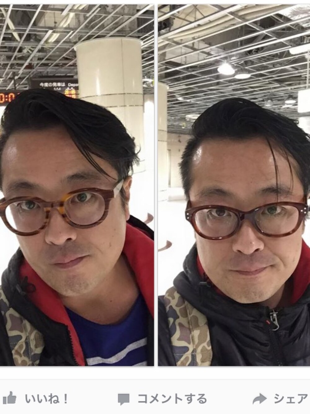 Q:間違い探しです(^o^)✨ 何処が違うでしょうか? A:メガネの鼈甲風は一緒ですが、フレームの形がラウンドとスクエアタイプで異なりま〜す(*^^*)💦
