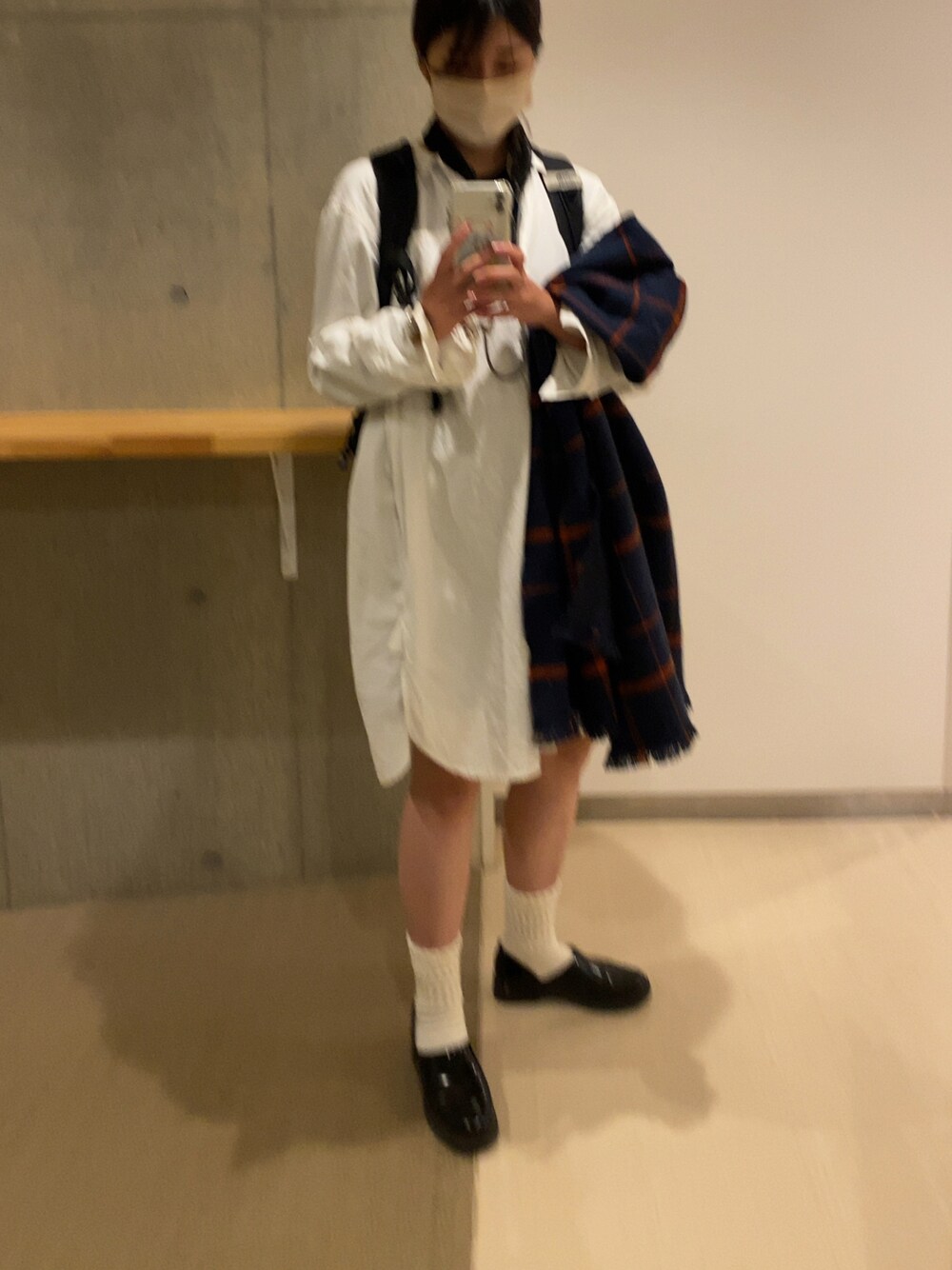 ブラック系のドレスシューズを着用したレディースの秋コーディネートの1枚目の写真