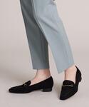 ●身長:158cm ●普段サイズ:シューズ23.5cm 【履き心地】 幅広のスクエアトゥなので靴下合わせでも指先が窮屈感なく楽に履けました。甲深のデザインですが、サイドにスリットが入っているので甲も圧迫感なく履けました。 【コーディネートポイント】 ジャケット×パンツスタイルにはローファーを合わせてマニッシュなスタイリングにしました。黒のローファーはカラーソックスやカラータイツとの合わせもオススメです!