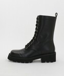 【サイズ感・履き心地】 シューズ:通常のサイズで問題ないです。とても軽量でクッション性もあるので、スニーカー感覚で履けます。ストレスフリーな履き心地なので、ご旅行にもオススメです。 【使用感】 バッグ:ペットボトルや折りたたみ傘も入るサイズ感です。ハンドルは長めなので、アウターを着用していても肩掛けしやすいです◎ 【コーディネートポイント】 ミニスカート合わせは子供っぽくならないように、丈のあるショートブーツを選びました。ボリュームソールで、スタイルアップが叶うショートブーツです。