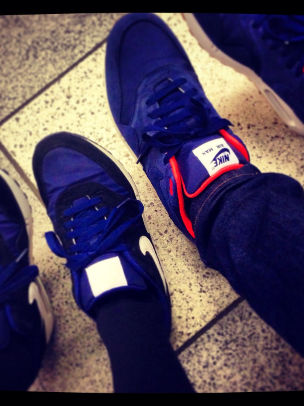 Nike IDで作ったAirMAX♡ 彼はネイビーメインでポイントにオレンジ。 私は黒とネイビーと白でベーシックな感じ(♡˙︶˙♡)