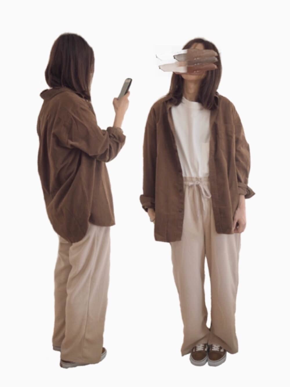 閲覧、いいね♥、保存+ありがとうございます☺️💛 コーデュロイシャツ着回し♩ ゆるい感じが好きです☺️ ブラウン系でまとめました🐶