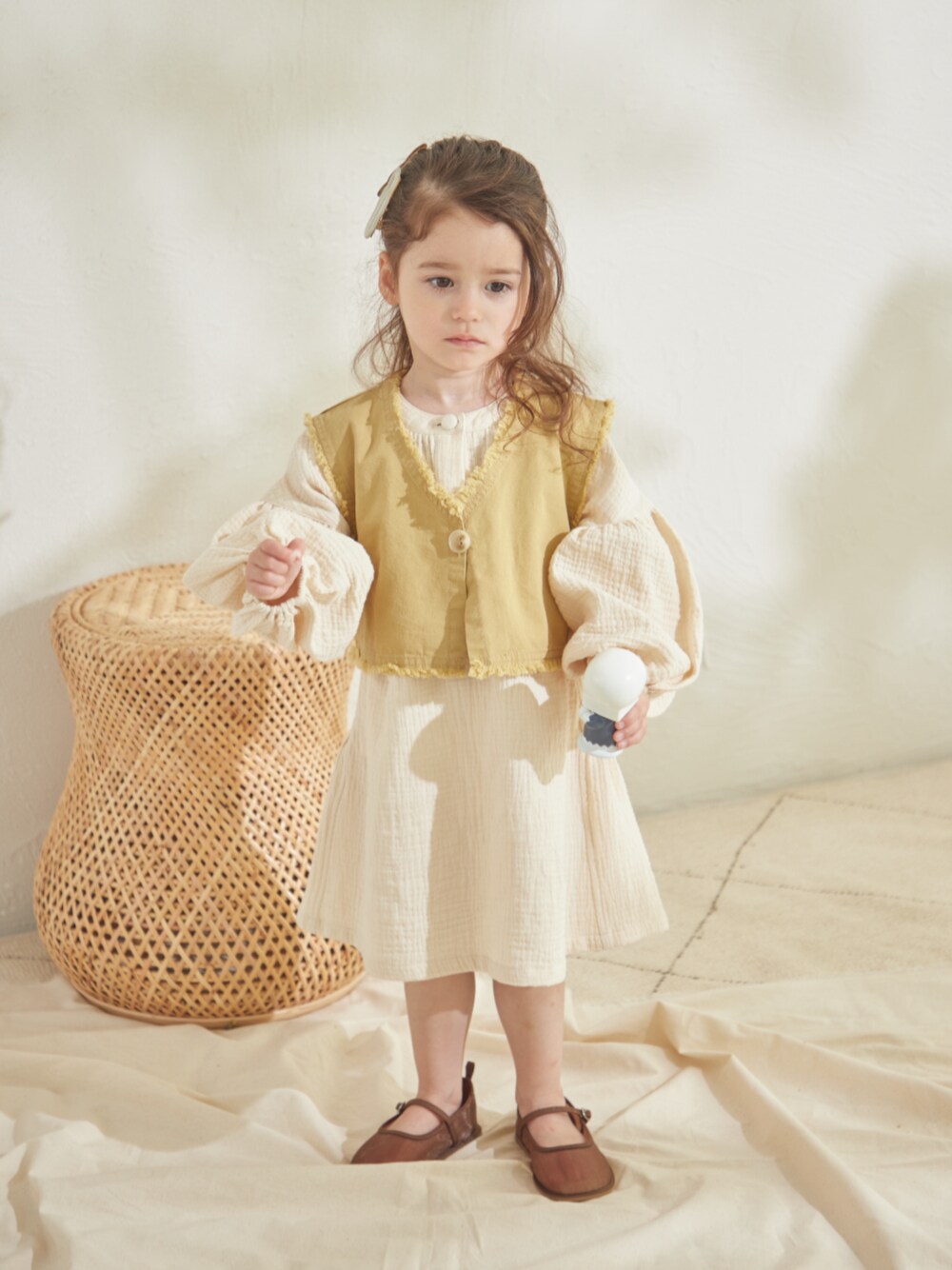 【sea and shells】 ボリュームスリーブ ワンピース🐚 ■モデルサイズ:91cm 着用サイズ:90