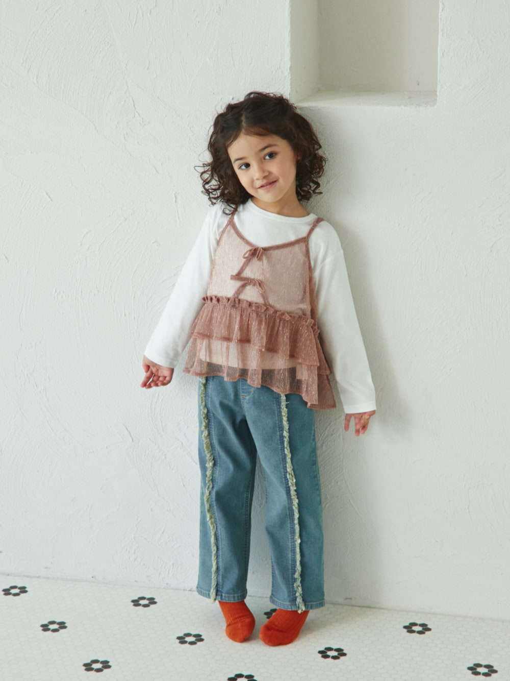 【リンクコーデ】ラメキャミソール付き 2点セット 長袖Tシャツ ■モデルサイズ:107cm 着用サイズ:110