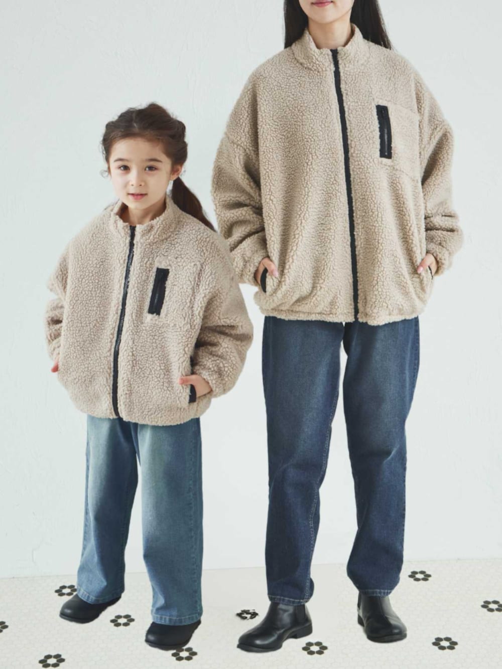 【リンクコーデ】ボアジップブルゾン 【リンクコーデ】【ママサイズ】ボアジップブルゾン ■モデルサイズ:112cm 着用サイズ:120 モデルサイズ:156cm 着用サイズ:FREE