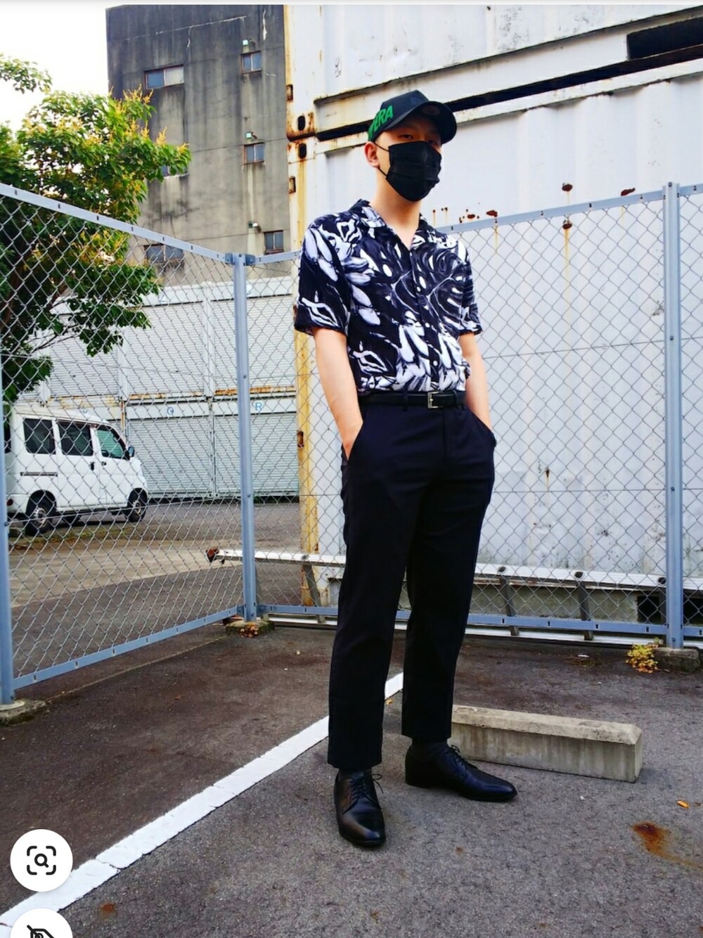ご覧いただきありがとうございます。 黒白柄シャツに黒のスラックス、革靴とキャップを合わせたモノトーンスタイルです。 Instagramやってます!