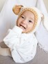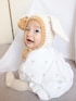 白をベースにベビーにしかできないコーデでうさぎさん風に 🐰🌷 レギンスはロンパースの柄のとボンネットの淵のベージュで合わせて引き締めてバランスを整えところがポイント 🧦🐾
