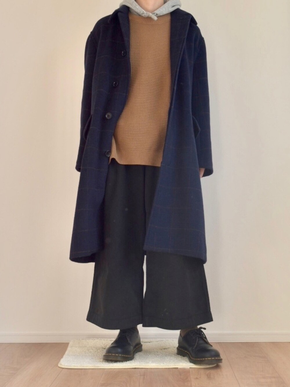 おはようございます◎ いつもいいね、+くださる皆さんありがとうございます☺︎☺︎ 本日も冬アウター着回しチャレンジ! ビックシルエットのロングコートにあえてビックシルエットのパンツ合わせました☺︎ トップスはパーカーを合わせながらもカジュアルになりすぎないようバランサーとしてベストニット差し込んでます。 ゆったりとした格好が好きです☺️ 連休明け!今日からまた頑張りましょーう!