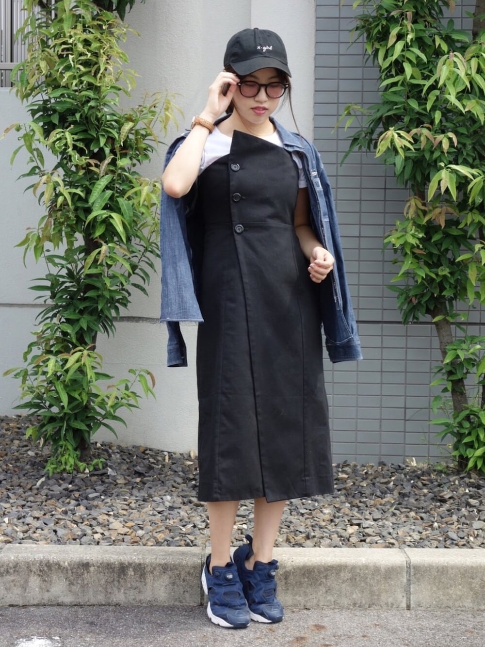 このワンピはx-girlとの相性も抜群♡ スニーカーはお気に入り安定のポンプ:-)