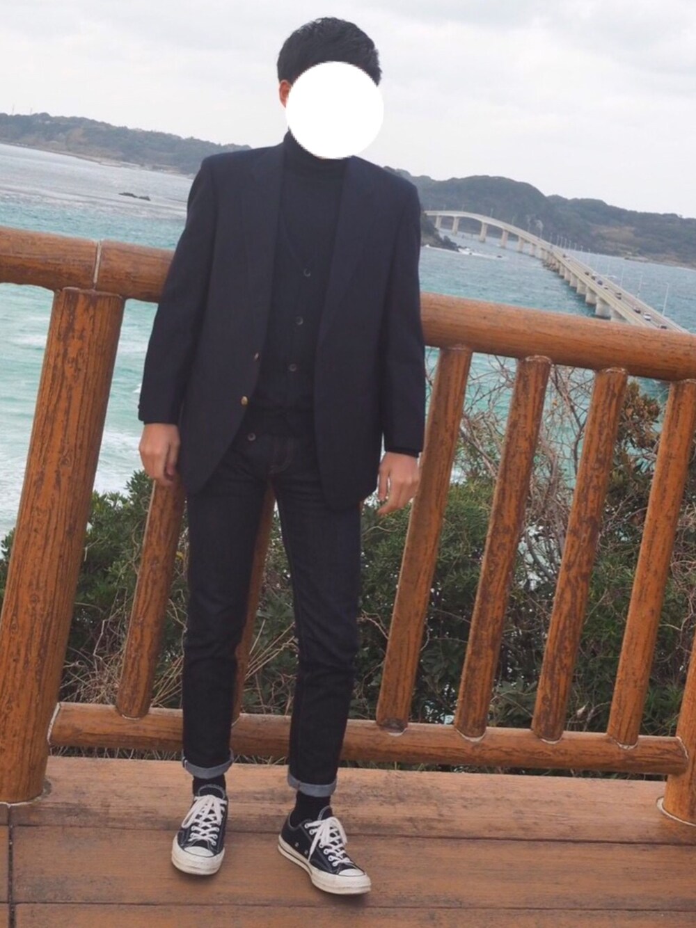 Jacket:vintage Knit:uniqlo Pants:uniqlo Shoes:converse chuck taylor
