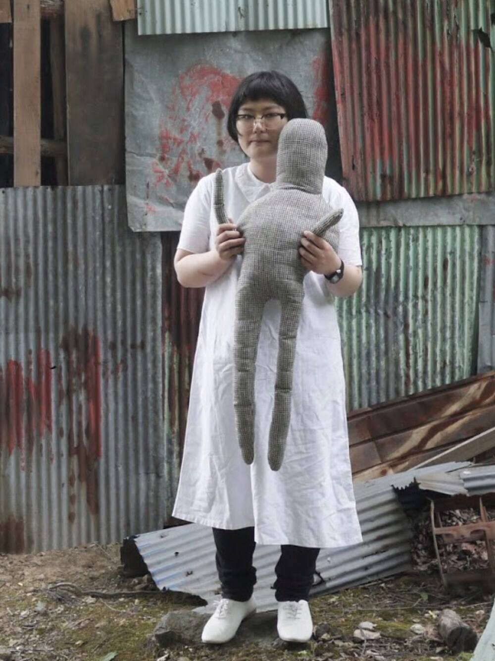 手作りの人形と廃墟に行きました。腕の火傷跡が痛々しい写真ですね。。脱毛には気をつけろ!
