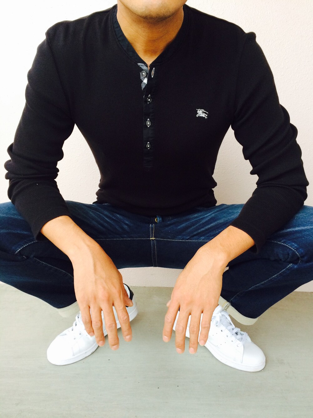 シンプルisベスト! ウノピュのニットデニムはディテールgood👍 テーパードでロールアップアンクル丈 バーバリーのニットはタイトに!!