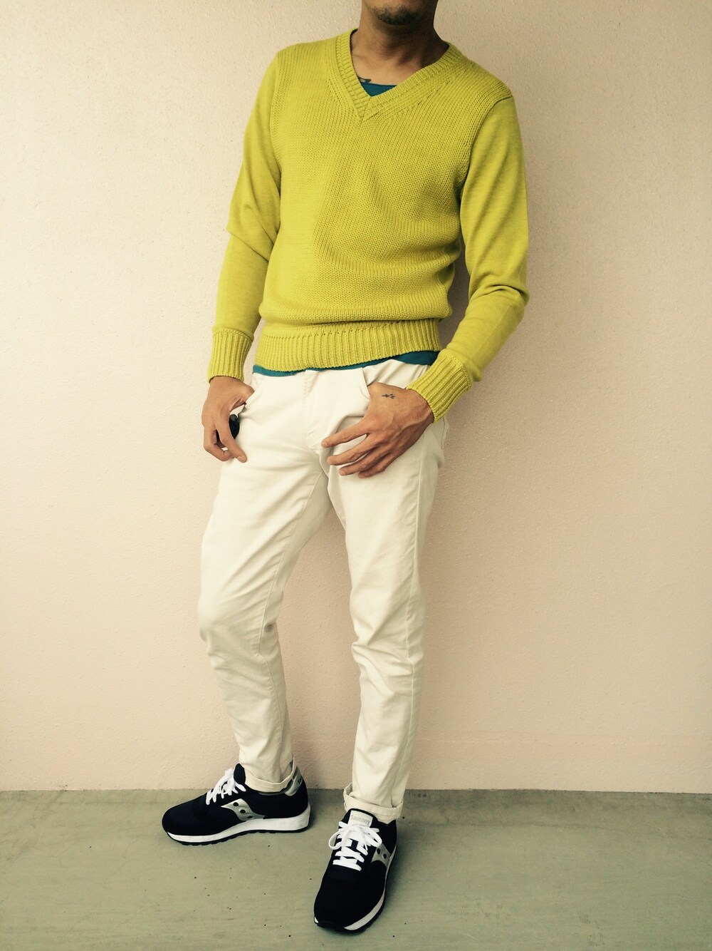 オータムカラーのロー&ミドルゲージニット インナーとのバランス 今日は子供の運動会中止〜〜!☆ 買物行って来ます