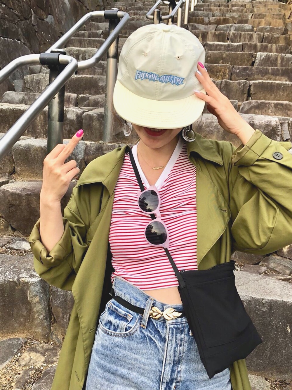 Y U K Aのキャップを使ったコーディネート