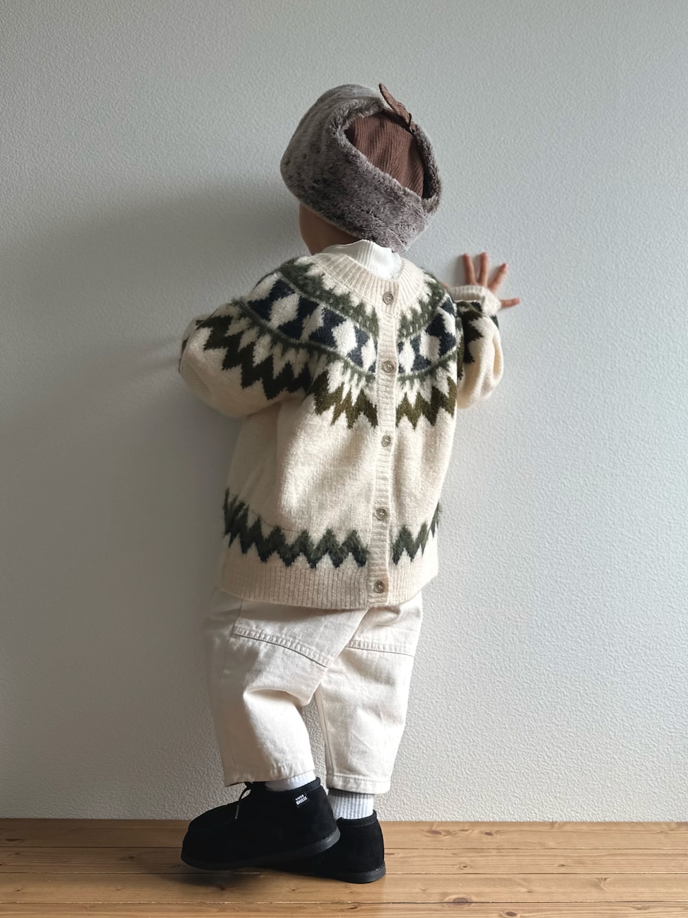 tanshio.のカーディガン/ボレロ「【WEB限定カラー】【KIDS】ノルディックフェザーヤーン2WAYクルーネックカーディガン」を使ったコーディネート