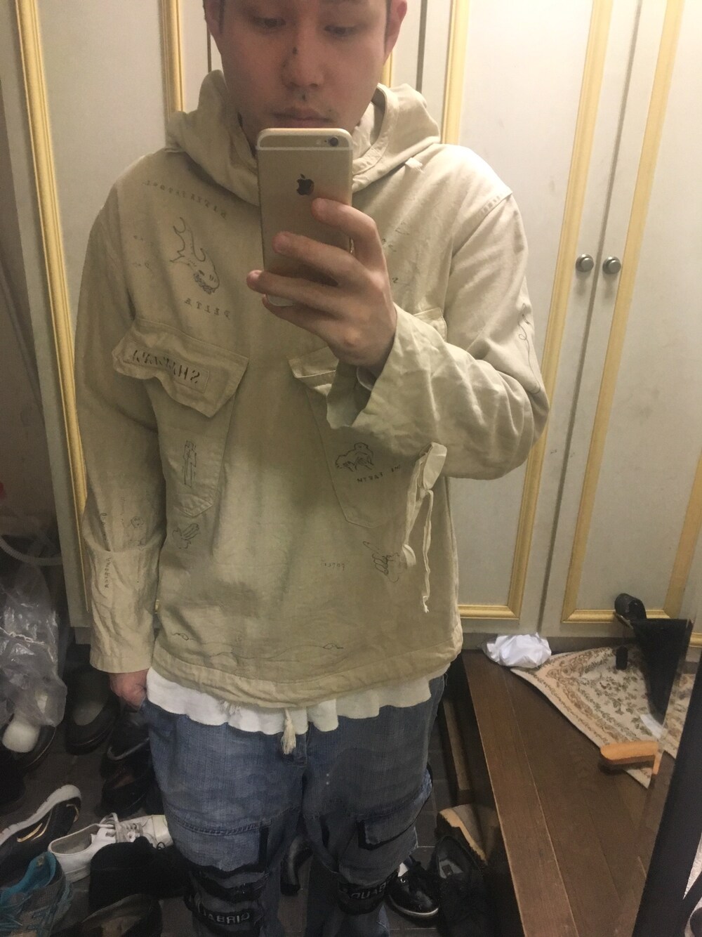 ジルボーのジーンズは名作多いです。おそらくこのシャトルジーンズが一番有名なんだろうな… 値段が上がってきてるみたいなので、今が買い時かと思います! 今日はシャトルジーンズに合わせて思いっきりストリートっぽく合わせてみました。あくまでも主役はジルボーのデニムです(笑)パーカーはshananamilのヴィンテージスモッグパーカーにデザイナー自らが落書きしたものです。かなりパンチが効いていていい感じ♪