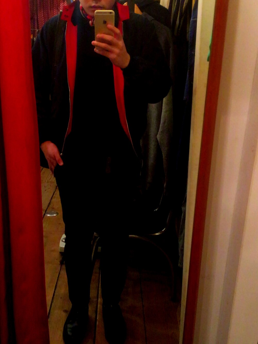 あったかくなってきたので、yugeのハリントンジャケットを♪ イメージはスキンズです(笑) Skinsというと白人、マーチン、MA-1というイメージがありますが、初期のskinsはハリントンジャケット(俗に言うBaracutaのG9やG4型のジャケットのこと。イギリスの当時流行のドラマの主人が着用していたことからこう呼ばれています)やポロシャツ、スラックスなどを好んできていたそうです。また、skinsの音楽といったらskaですが、これは元々はジャマイカ発祥の音楽。英国に渡ってきたジャマイカ人も多いらしく、黒人のスキンズがいても不思議ではないのです。ツートンスカもここから発生したと考えると黒人音楽が既存の音楽に与える影響はものすごいものだと改めて感心させられます。